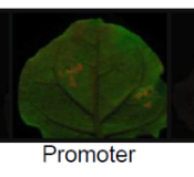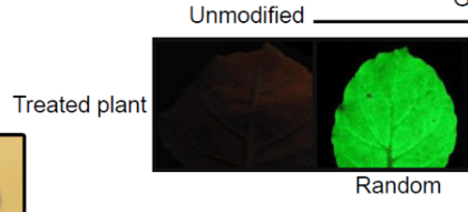 _Nhóm cây đối chứng có là màu thẫm khi quan sát dưới UV. Những cây được chuyển gen GPF và không bị tắt sẽ có màu xanh lục sáng.